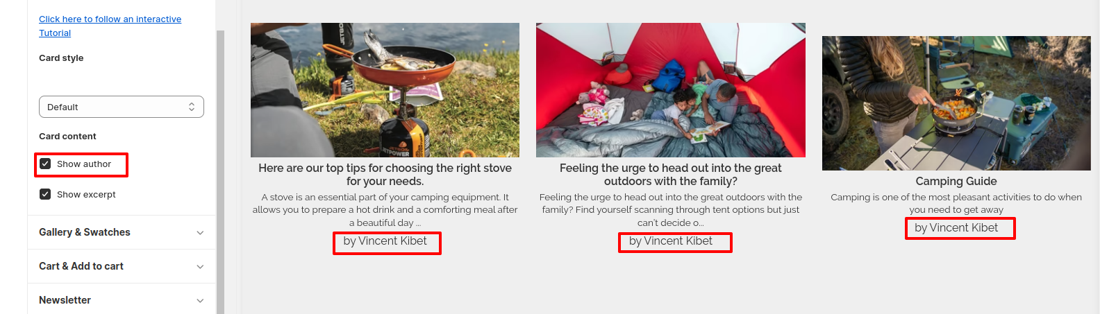 With the help of this option, under your blog card, you can easily display the name of the author.