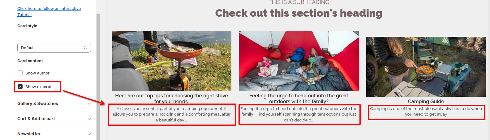 With the help of this option, under your blog card, you can easily display the excerpt.