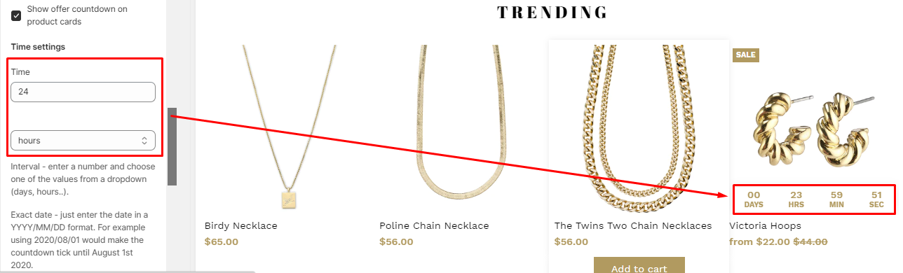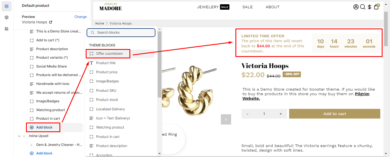 IMPORTANT: If you want your countdown timer to show on your Product Page, make sure to add an Offer countdown block to your Product page Content.