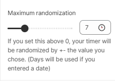 In addition, you can add some randomization to your countdown, this will create the effect to be more genuine. You can select from 0 to 30, it will be randomized by +- the value you chose. For example, + 20 days if you selected the countdown to be in days.