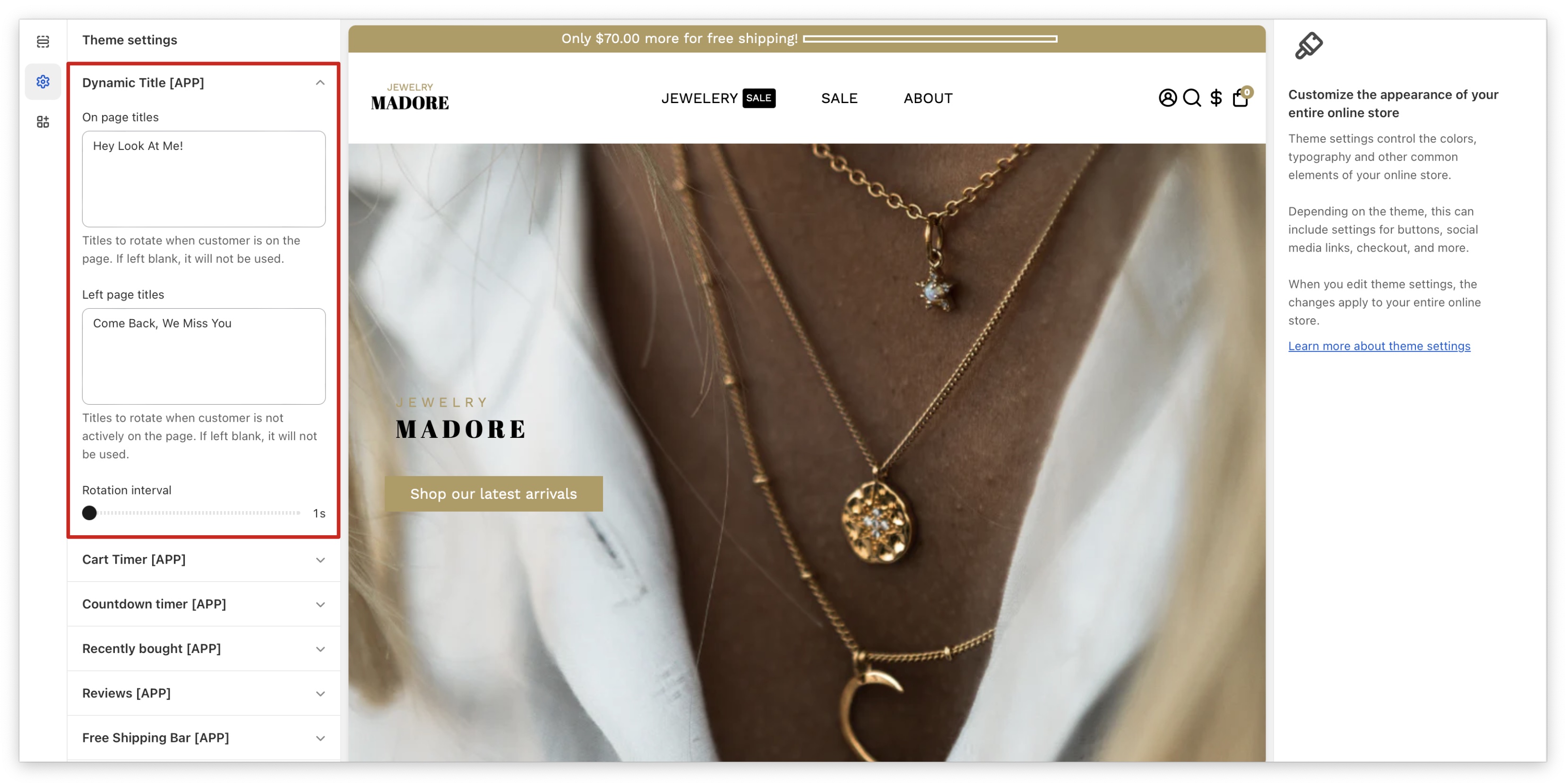 This setting enables you to have a dynamic title for your online store. It works by drawing the customer's attention back to the page when they leave.