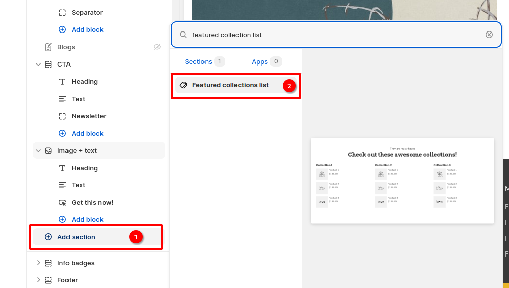 In order to add it to a page, click on Add Section -> Featured Collection List.