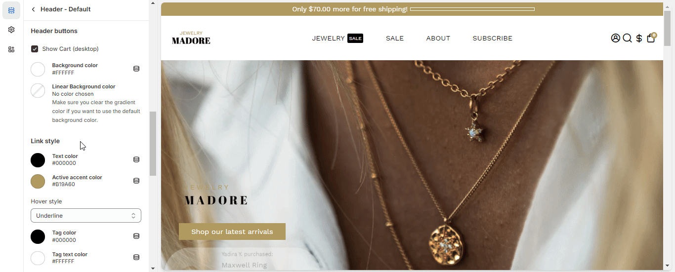 You can make the header of your storefront stick to the same position at the top of the screen. You can scroll the rest of the screen, but the header will still be there at the top. Either enable or disable this option according to your desire.