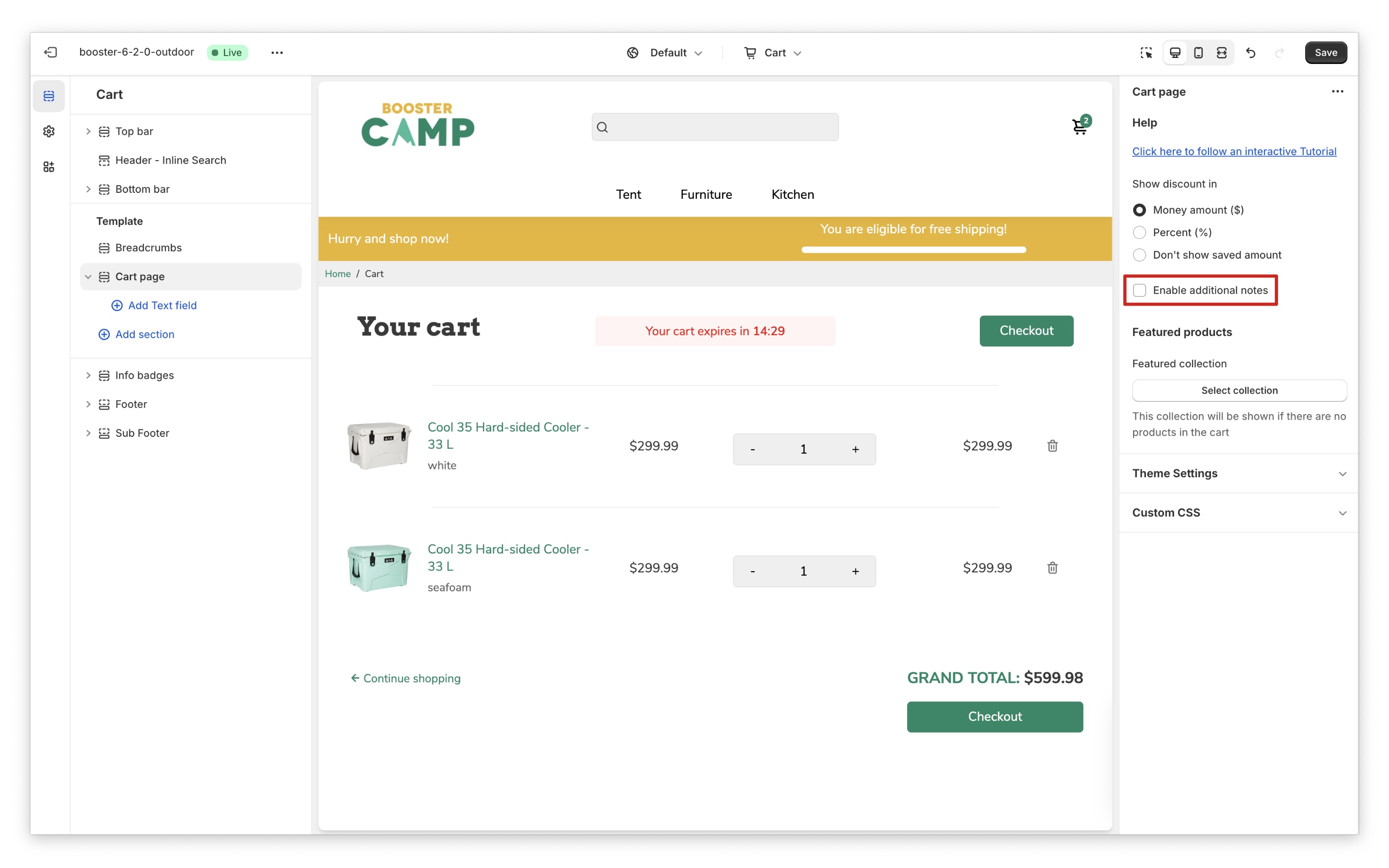 How to setup Cart page in Booster theme