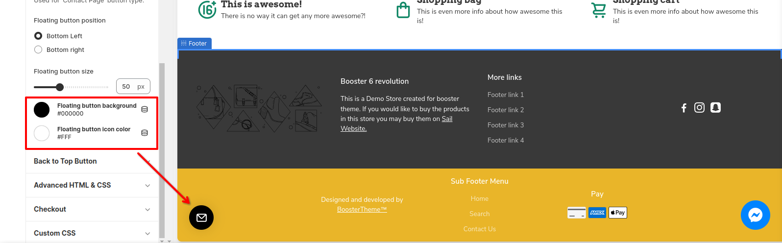 The check-boxes in the Floating contact settings allow you to enable or disable the floating contact feature on both desktop and mobile versions of your website. This means that you have the flexibility to choose whether you want the floating contact button to be visible to your customers on all devices or only on specific ones. By enabling this feature, you provide your customers with a convenient and accessible way to get in touch with you, regardless of the device they are using. This helps to improve the overall user experience and ensures that customers can easily reach out to you whenever they need assistance or have any inquiries.