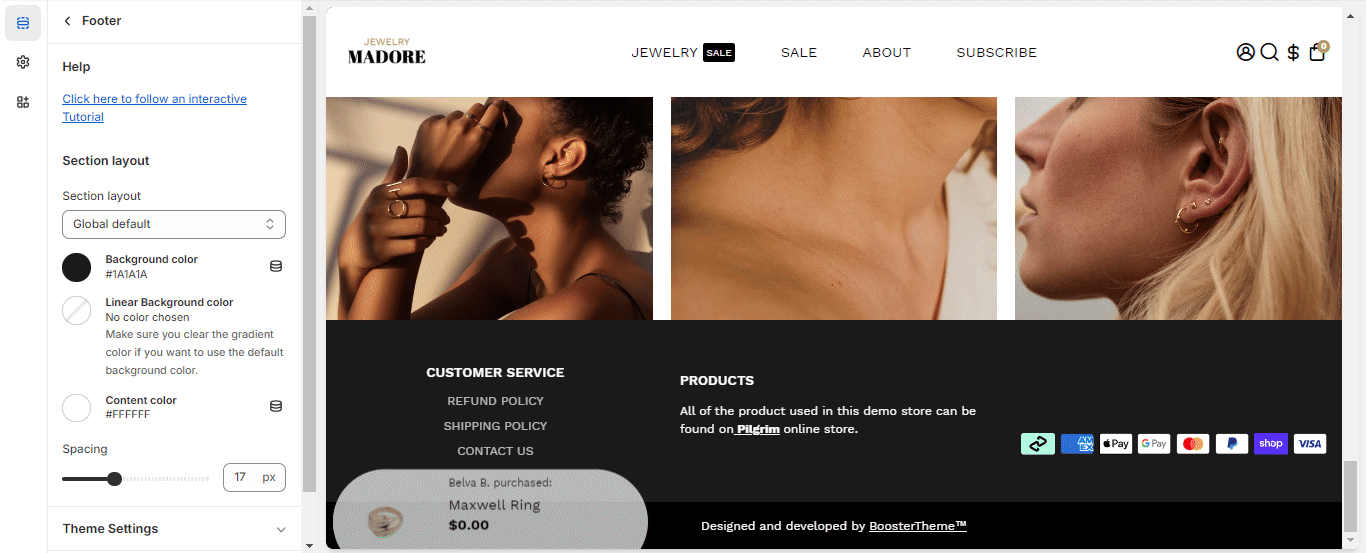 How to set up the Footer section in Booster Theme.