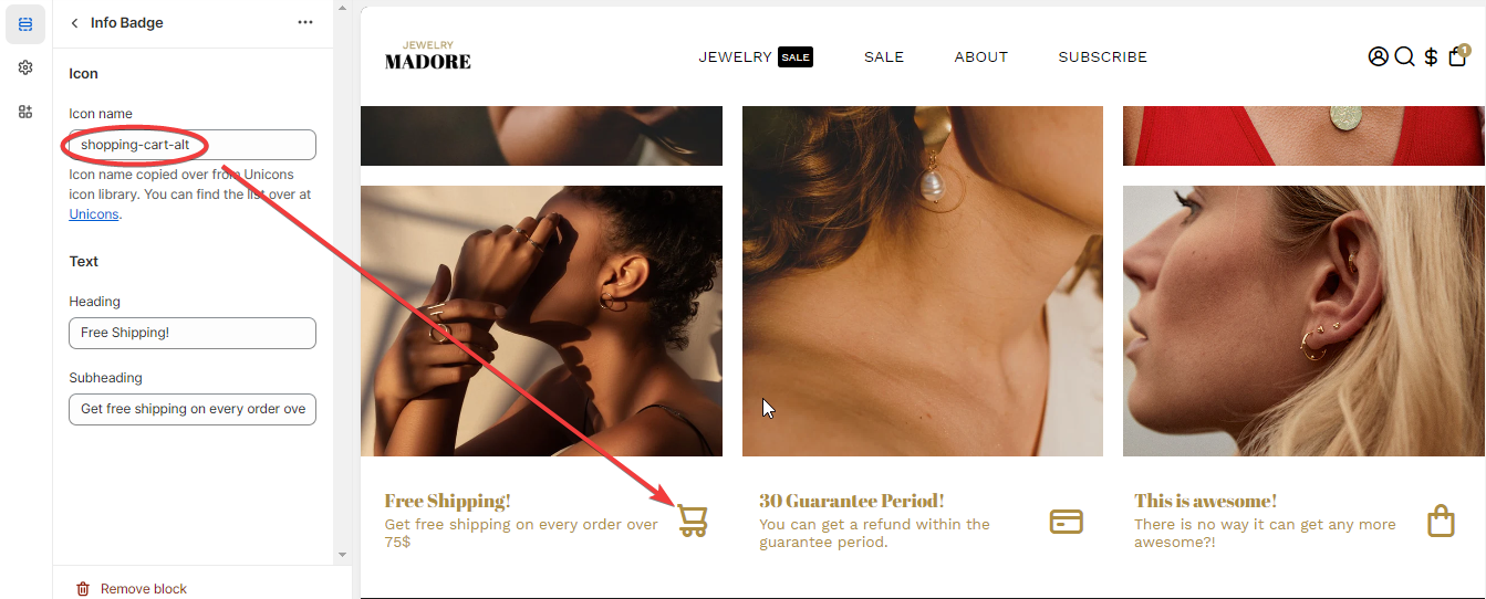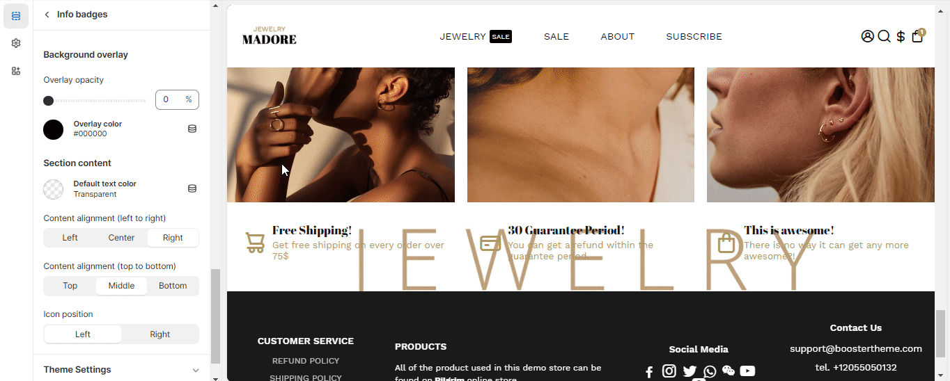 The content, in any online shopping site, is king. The info badges need to have proper content too, to attract customers. Find out how to make the content of the info badges attractive to customers in our Booster theme. You can as many as four (4) blocks.