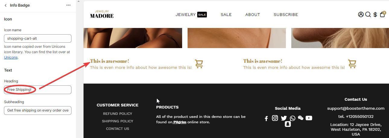 How to setup the Info Badges section in Booster Theme.