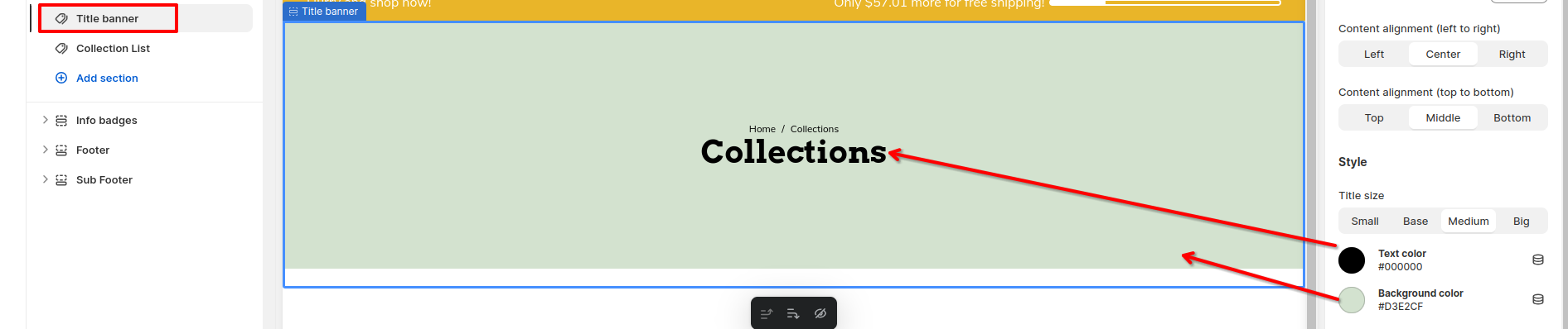 Modify the color of the title or the text added to your title banner. Prefer one that goes well with the design of your storefront.