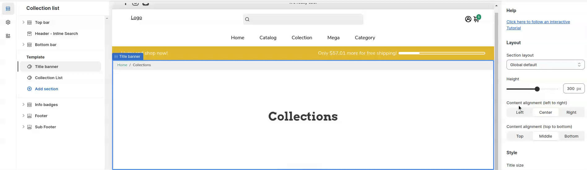 You can alter the height of the title banner added to your collection list. With the setting provided in the booster theme, you can alter the height according to your preference and choose an option from the range anywhere between 0 px to 500 px.