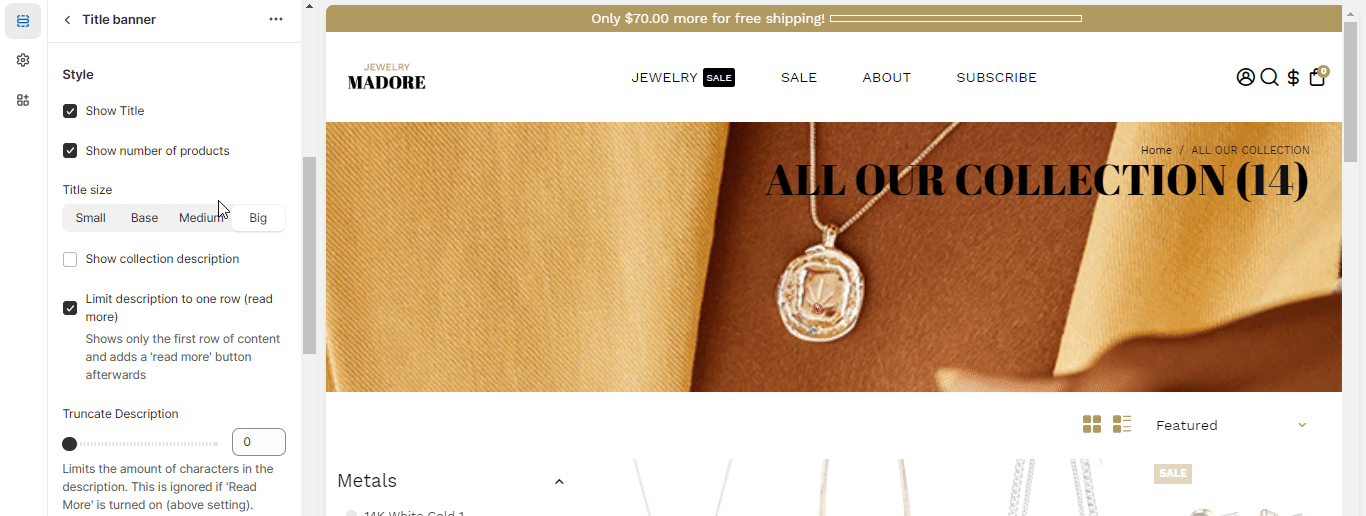 This setting allows our users to add title banners to the web pages of your Shopify Store. This way they will comprehend what each page contains. You can also alter your title banner with the help of other settings provided.
