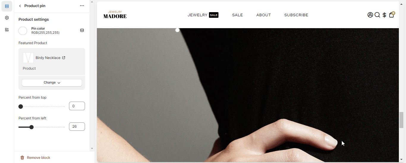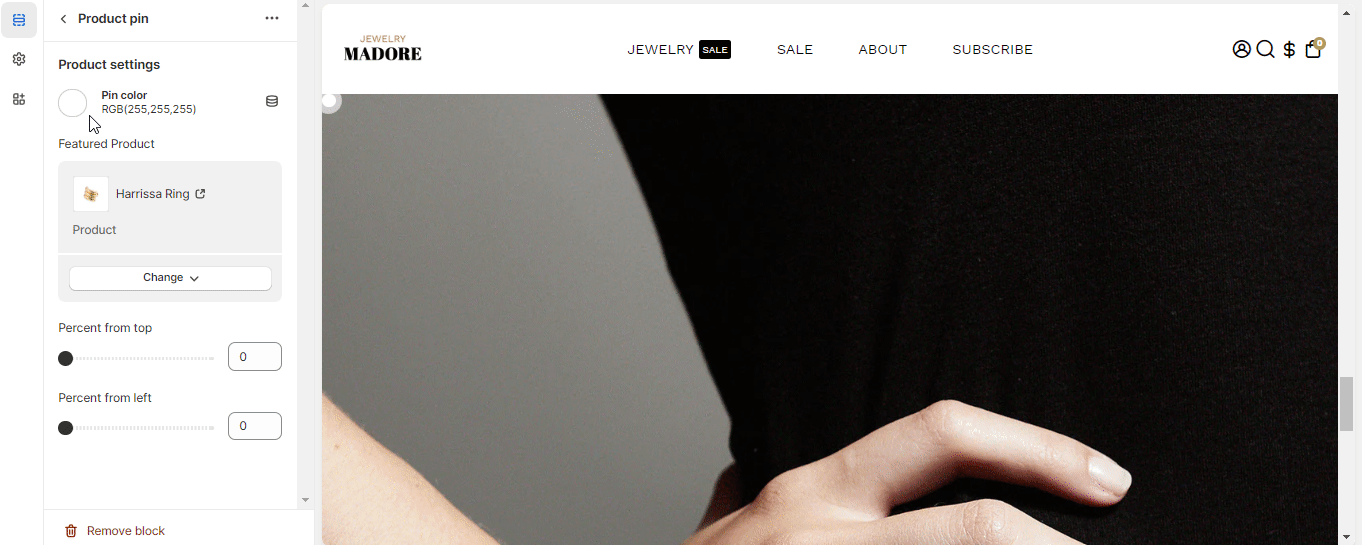 Our theme offers you the liberty to add a pin to any image in your Lookbook, with the help of this setting.