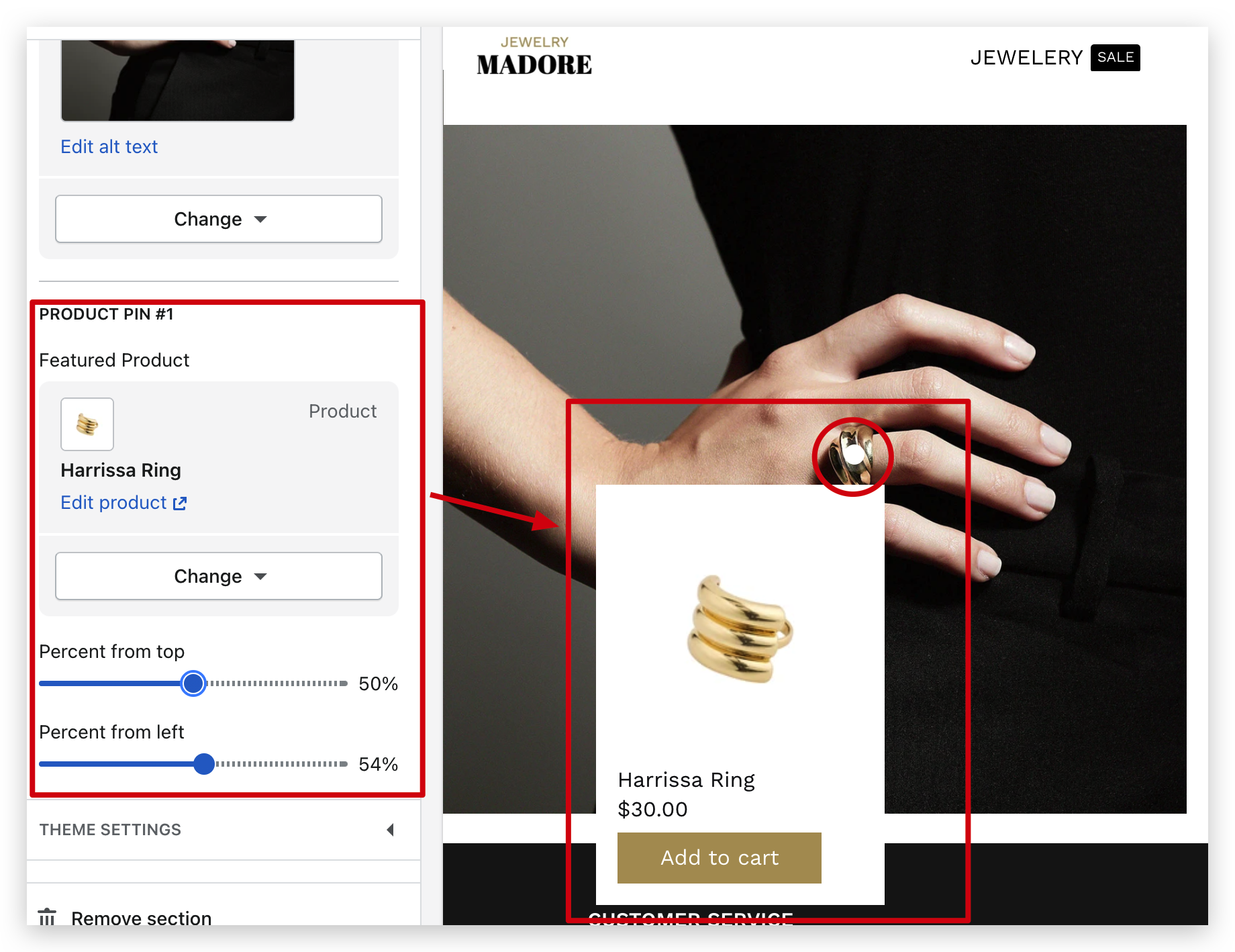 We offer the option to move the pin along the X and Y axis. With these settings, you can position the pin on the image in your desired manner.