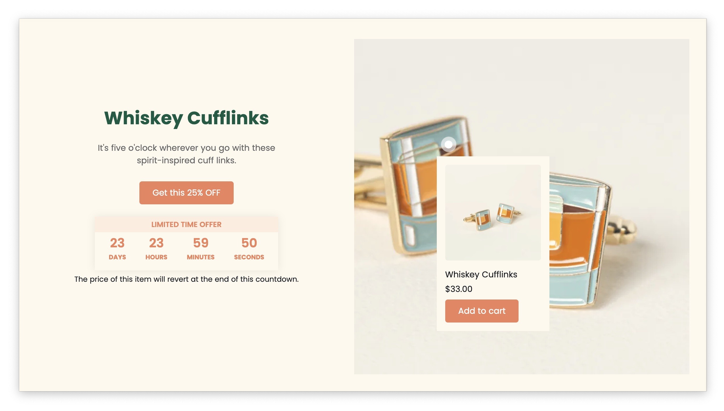 Use countdown timers to make your Lookbook + Text sections even more effective and reach your marketing goals.