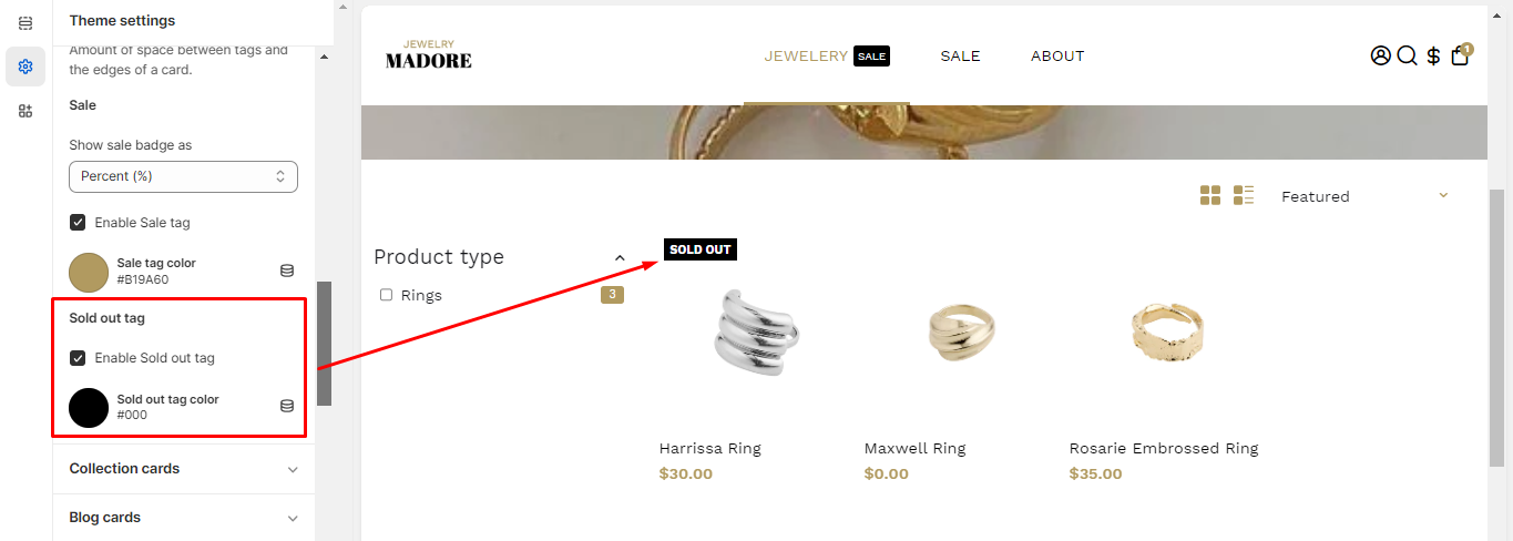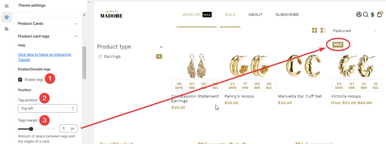 Product Card Tags theme settings