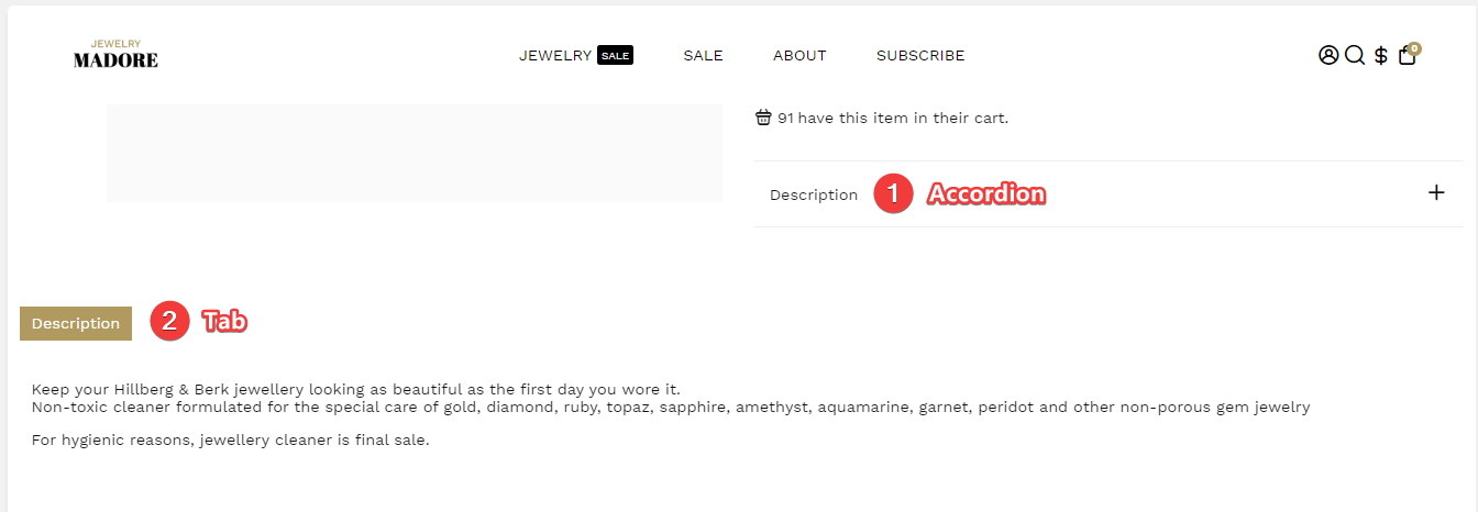 How to set up the Accordion or Tab on the Product page.
