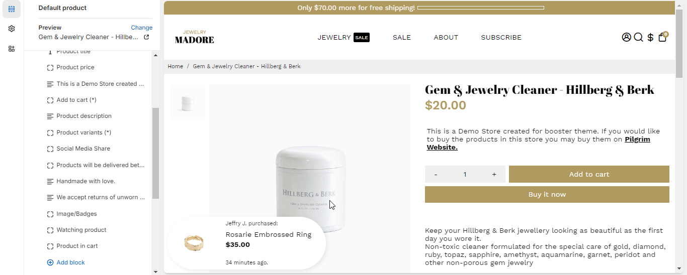 Note: You need to remove the "Product Description" block to avoid having many Product information.