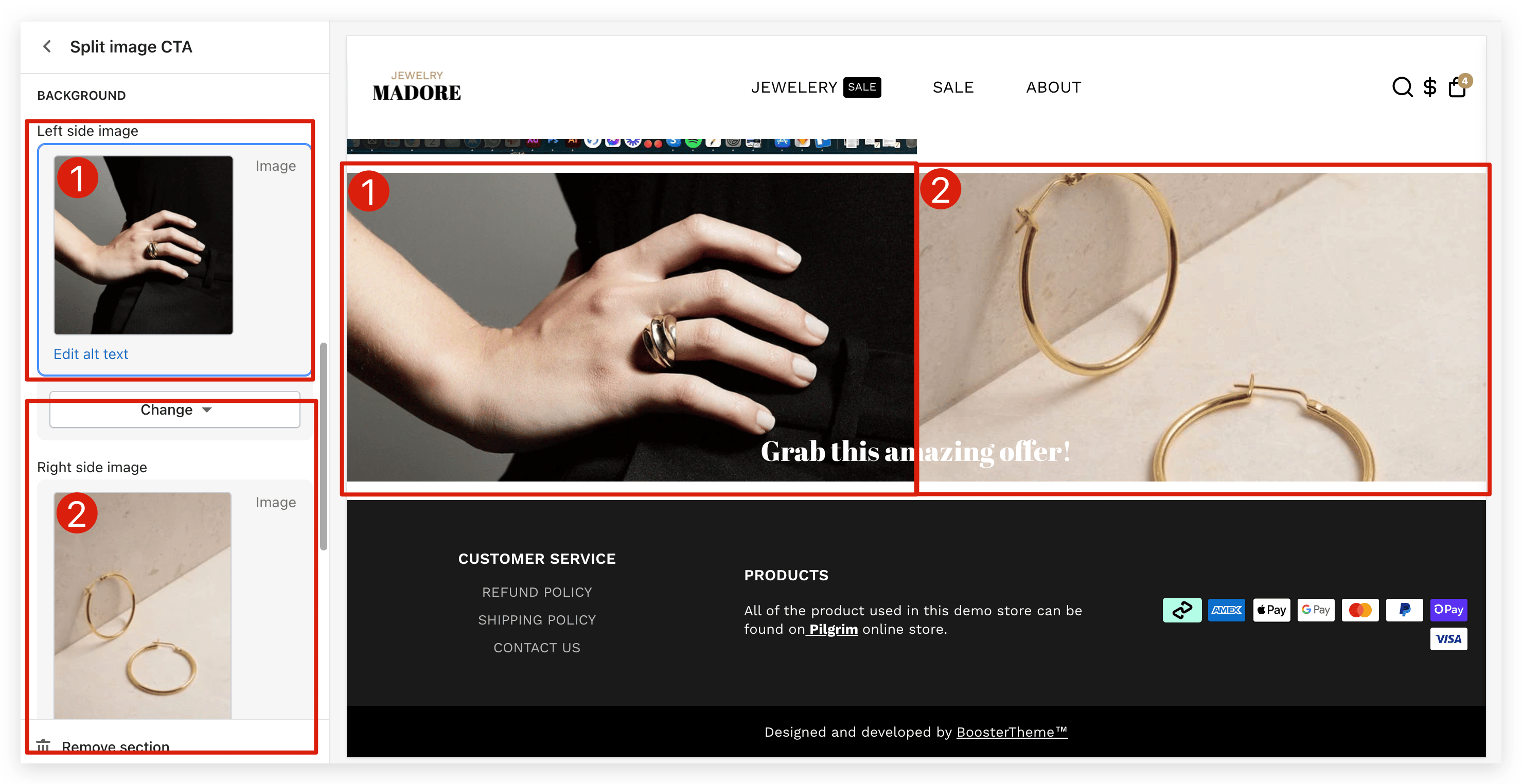 The split image CTA section enables you to add two different images in the background.