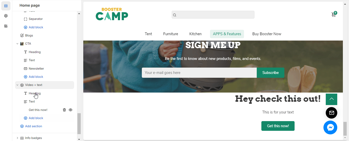 Let's learn how to add Video + text in our Booster them.